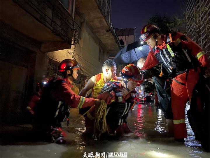 灾情发生后,遵义市消防救援支队第一时间启动抗洪抢险应急预案,迅速集结救援力量,携带冲锋舟、橡皮艇、救生衣、照明设备、破拆工具等专业救援装备,紧急奔赴受灾最为严重的区域。消防救援人员根据现场雨情、水情和灾情变化,及时调整救援部署,确保救援行动高效有序进行。